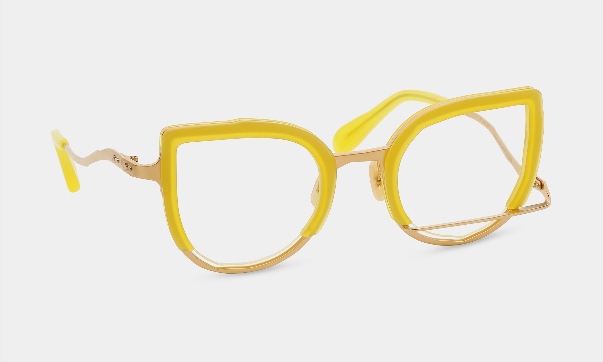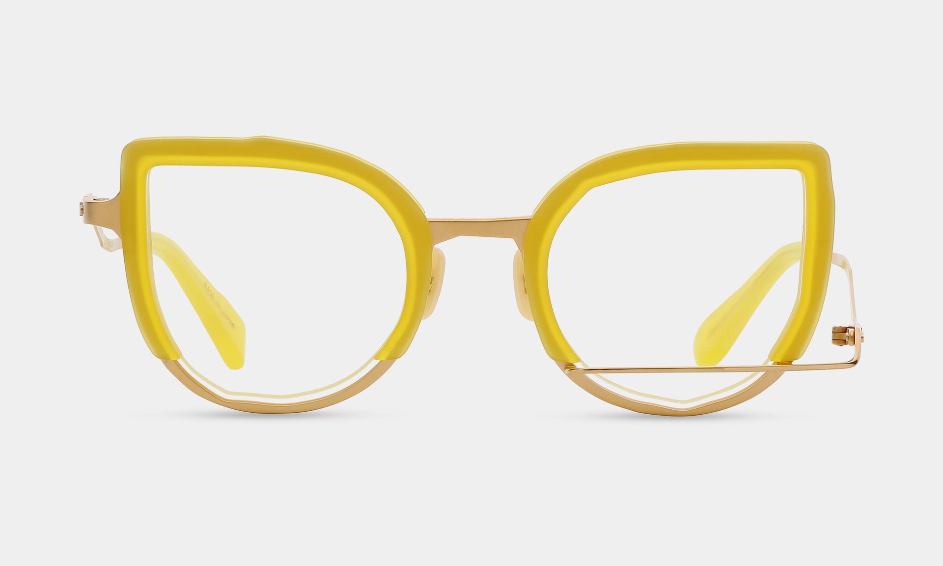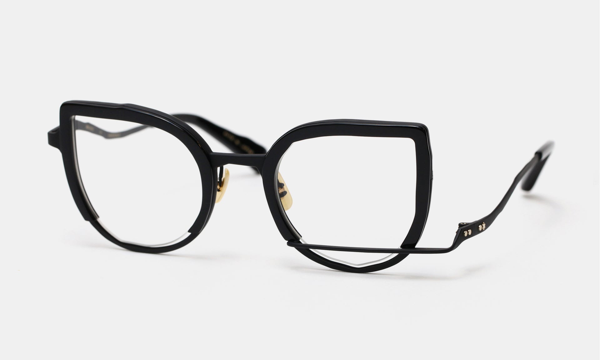 消しゴムで鉛筆のラインを消したイメージをメガネのデザインとして表現。パーツの配置の常識を大胆に消し、その後に力強く引かれたアンダーラインが特徴的です。正面のみではなく右からも左からも別々の表情が見えるように計算して設計され、一味違った存在感を放ちます。