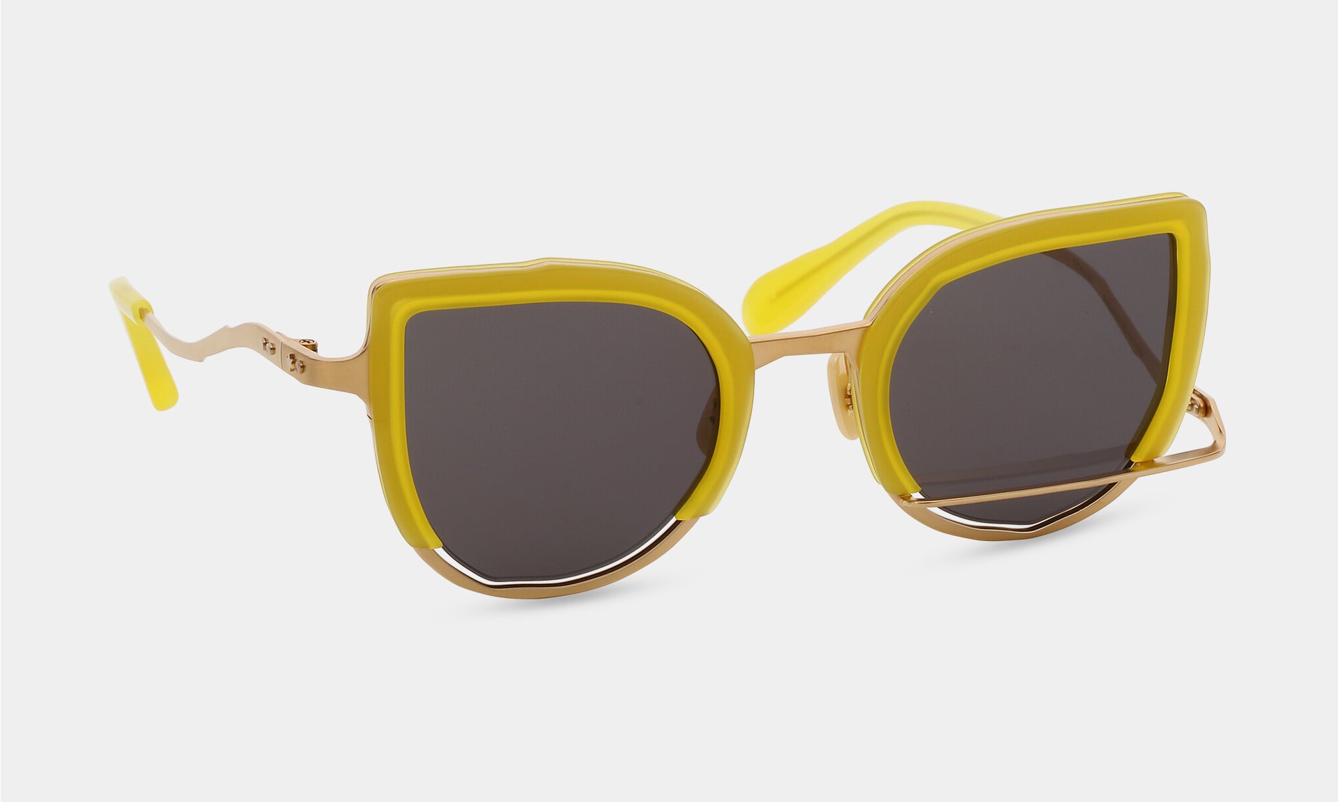 消しゴムで鉛筆のラインを消したイメージをメガネのデザインとして表現。パーツの配置の常識を大胆に消し、その後に力強く引かれたアンダーラインが特徴的です。正面のみではなく右からも左からも別々の表情が見えるように計算して設計され、一味違った存在感を放ちます。