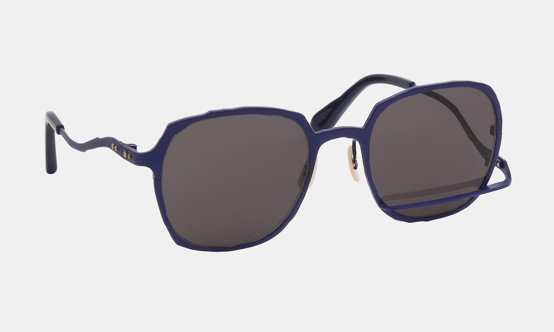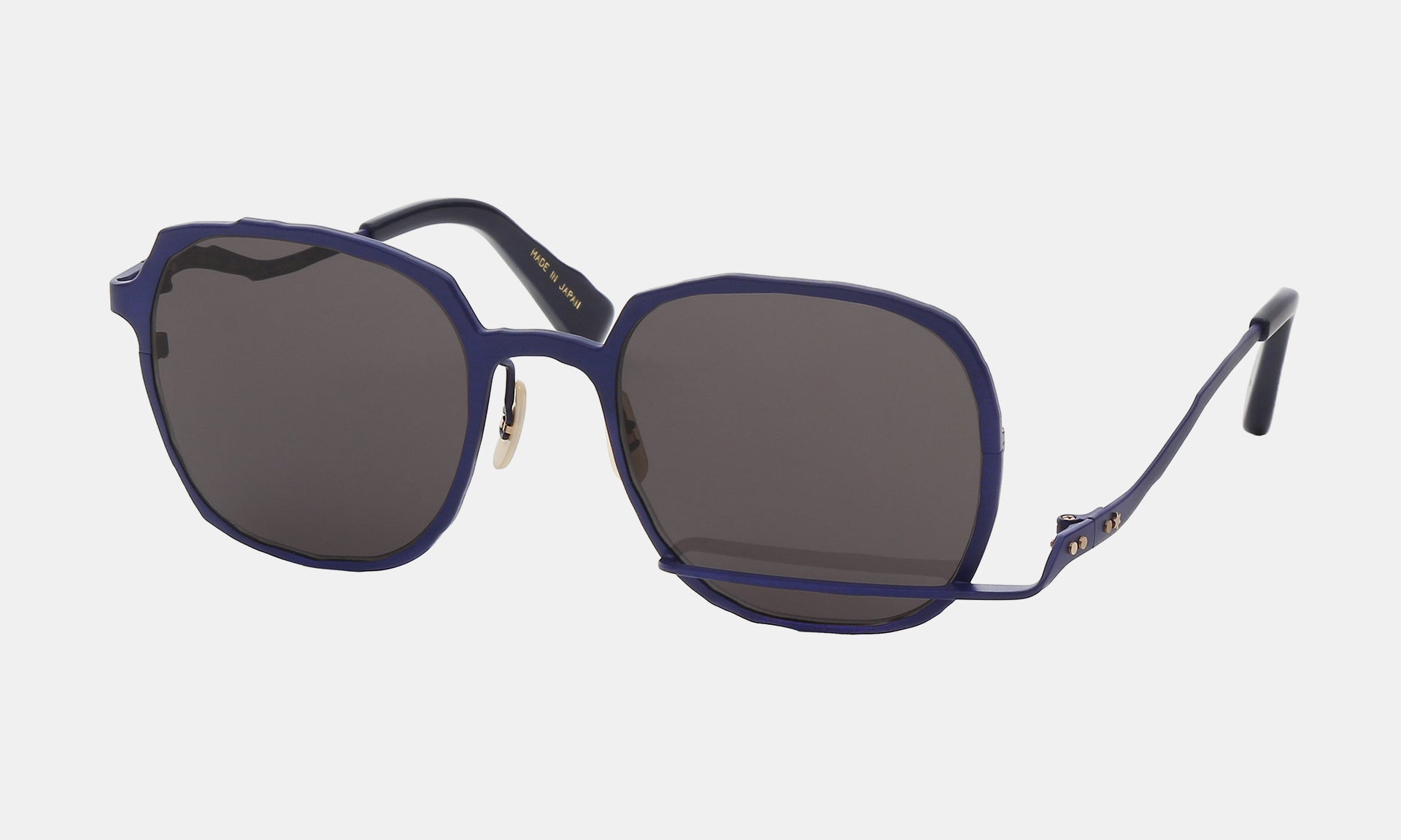 消しゴムで鉛筆のラインを消したイメージをメガネのデザインとして表現。パーツの配置の常識を大胆に消し、その後に力強く引かれたアンダーラインが特徴的です。正面のみではなく右からも左からも別々の表情が見えるように計算して設計され、一味違った存在感を放ちます。