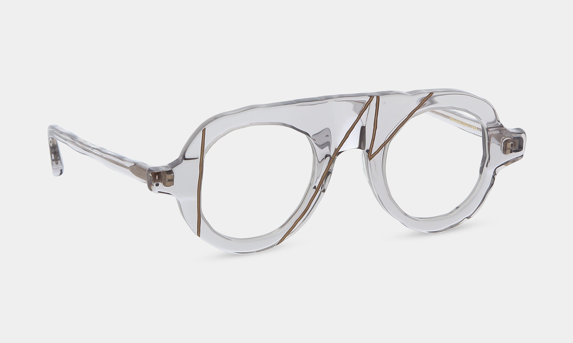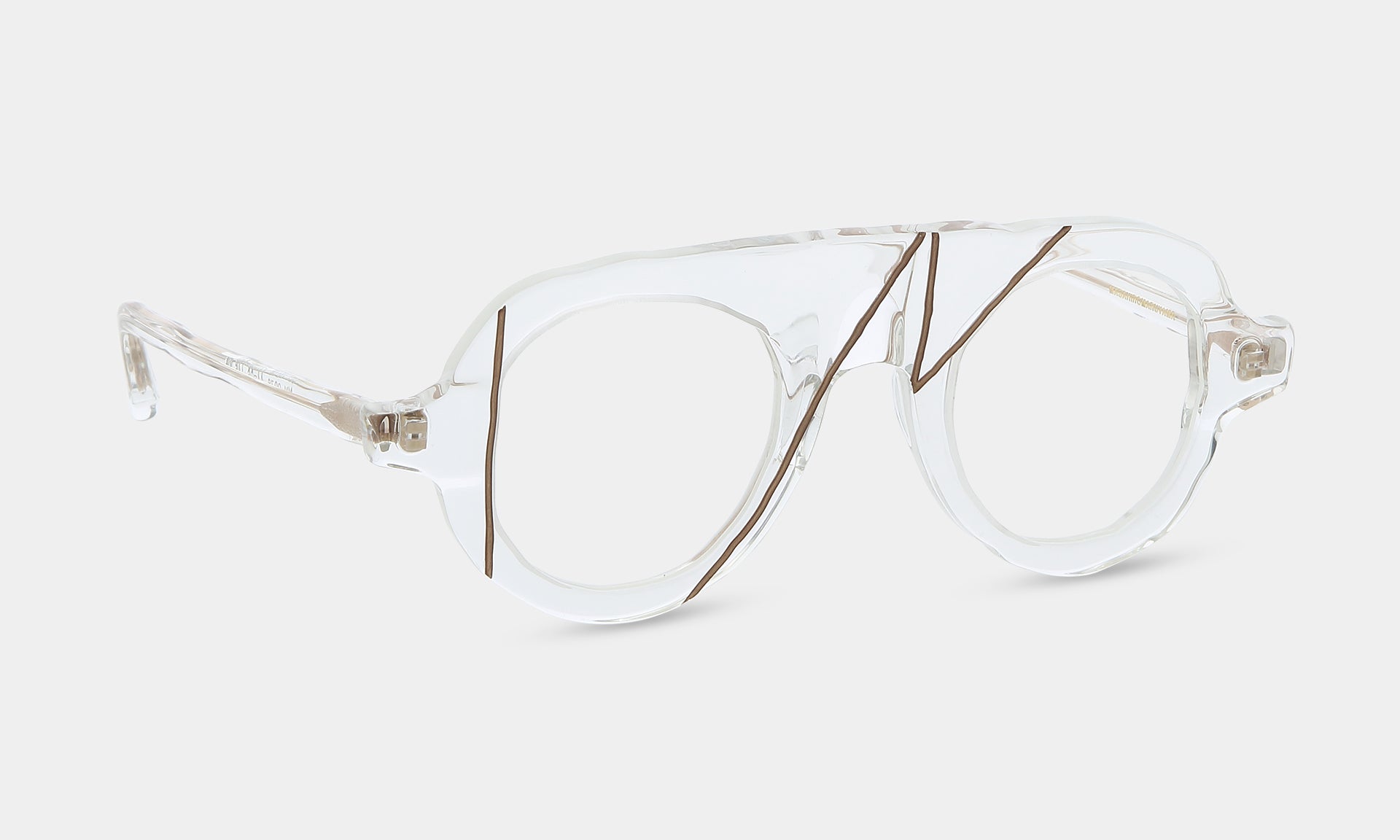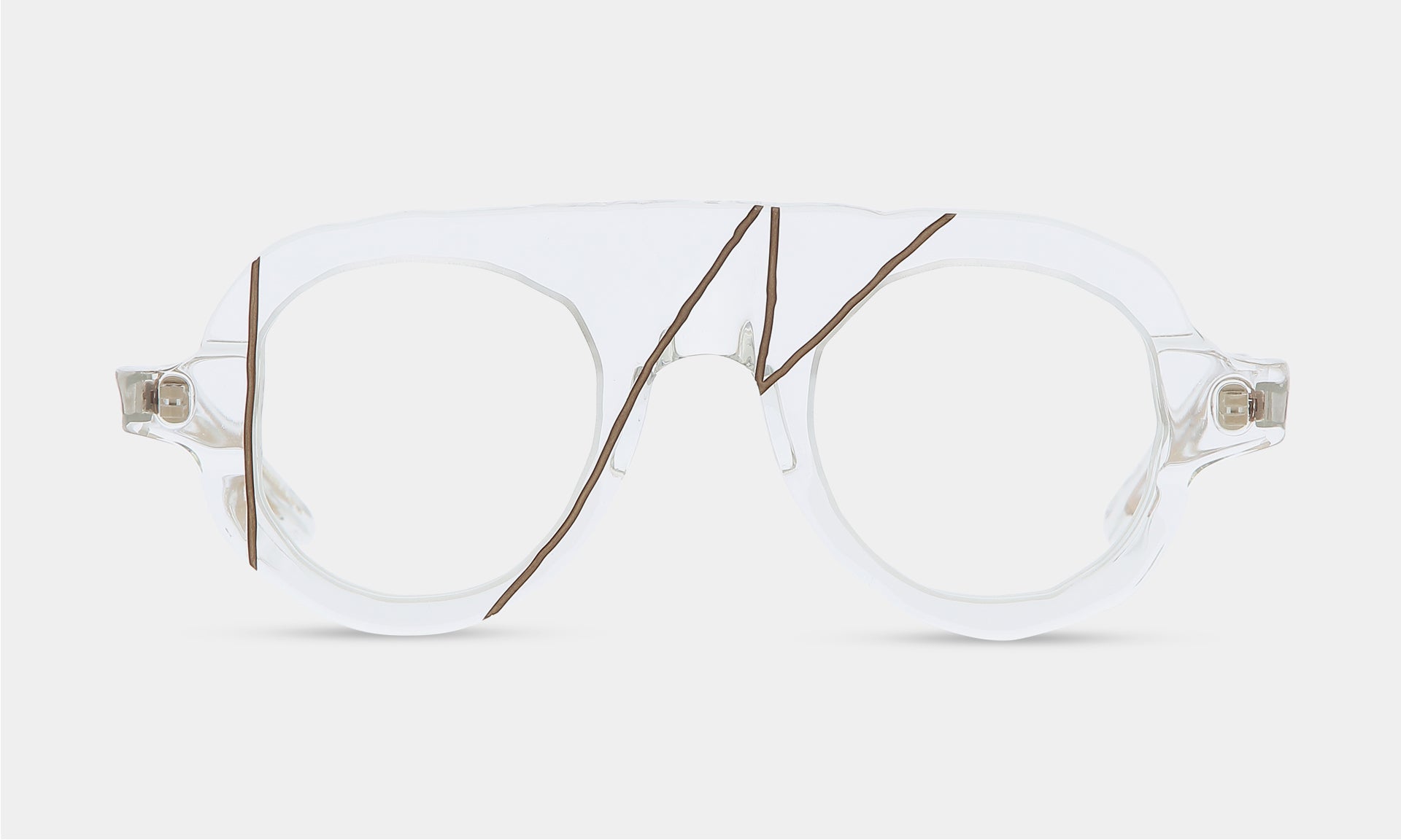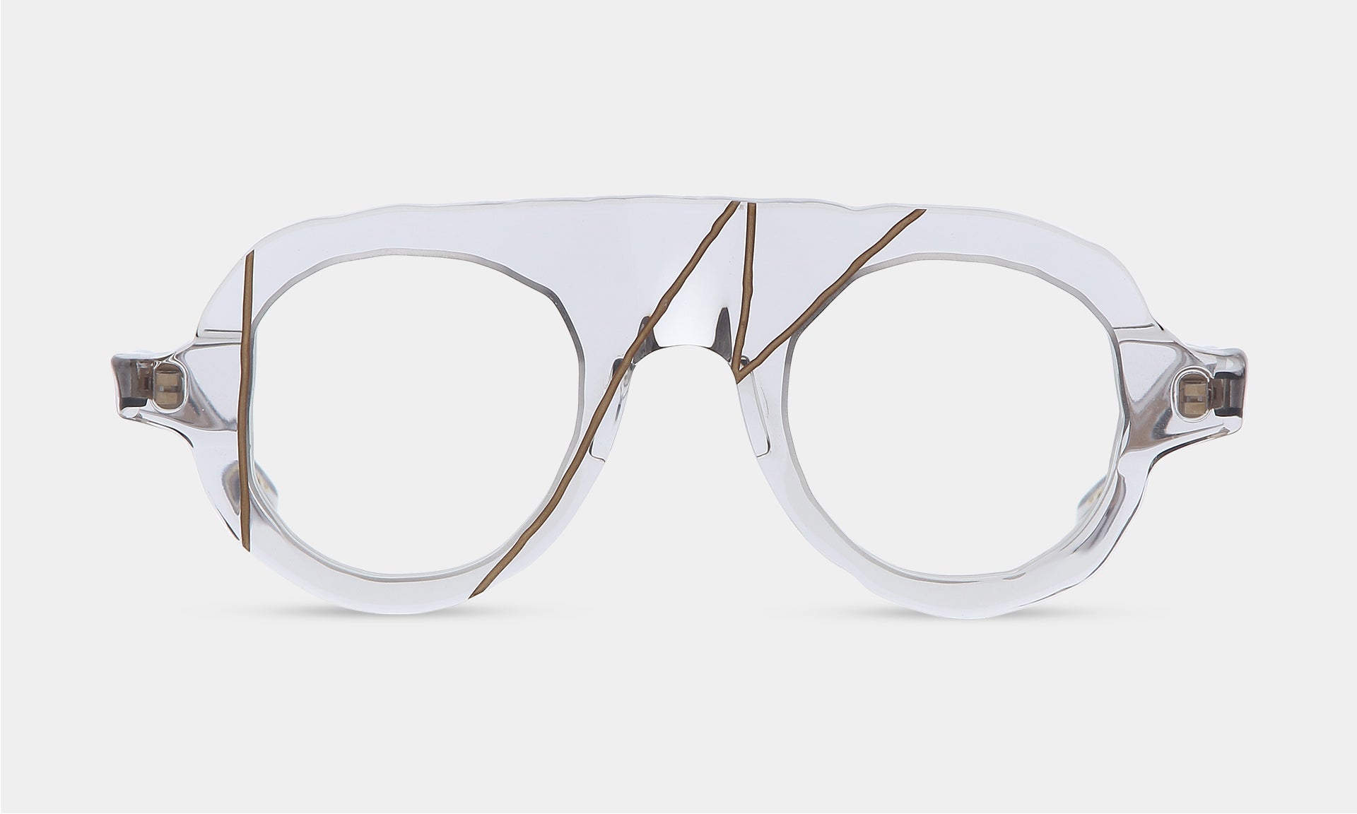 割れた陶磁器を美しく生まれ変わらせるKintsugiを眼鏡デザインに落とし込みました。Kintsugiのラインがフレームに新しい空間をもたらします。