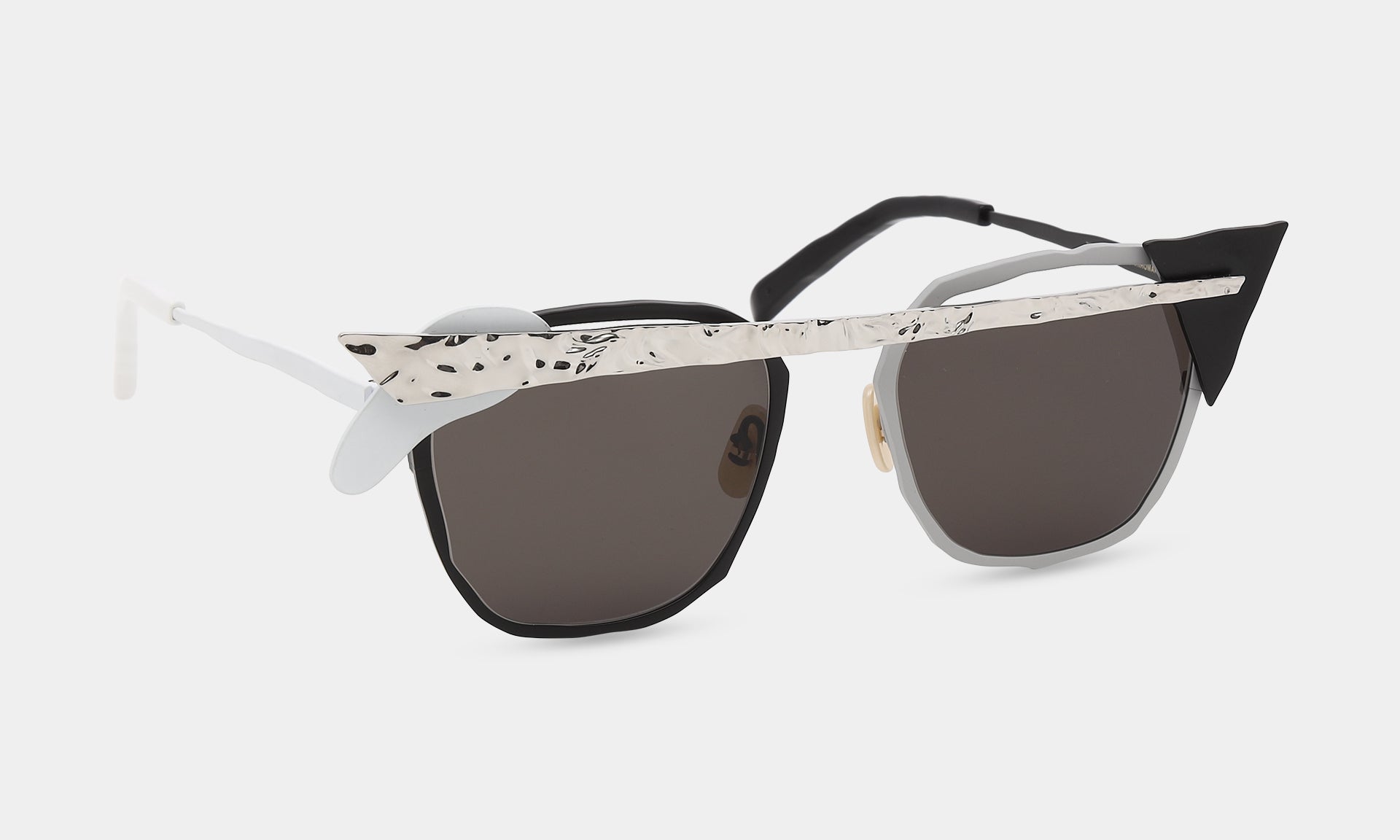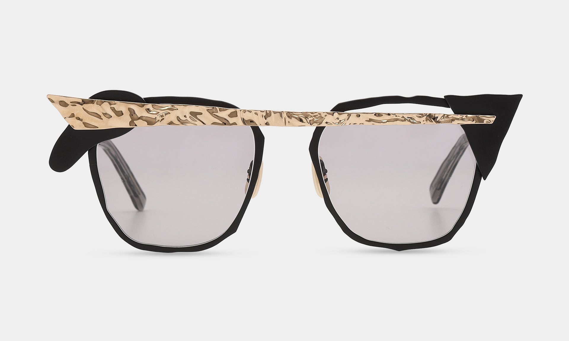 一つひとつのパーツを積み重ねる実験的なデザイン。ヨロイやブリッジを積み木の様に自由に置いてみる。それが構造となりメガネを作り出しています。色や素材感の違うパーツが組み合わさることで、複雑な色彩とだまし絵のような錯覚を生み出します。