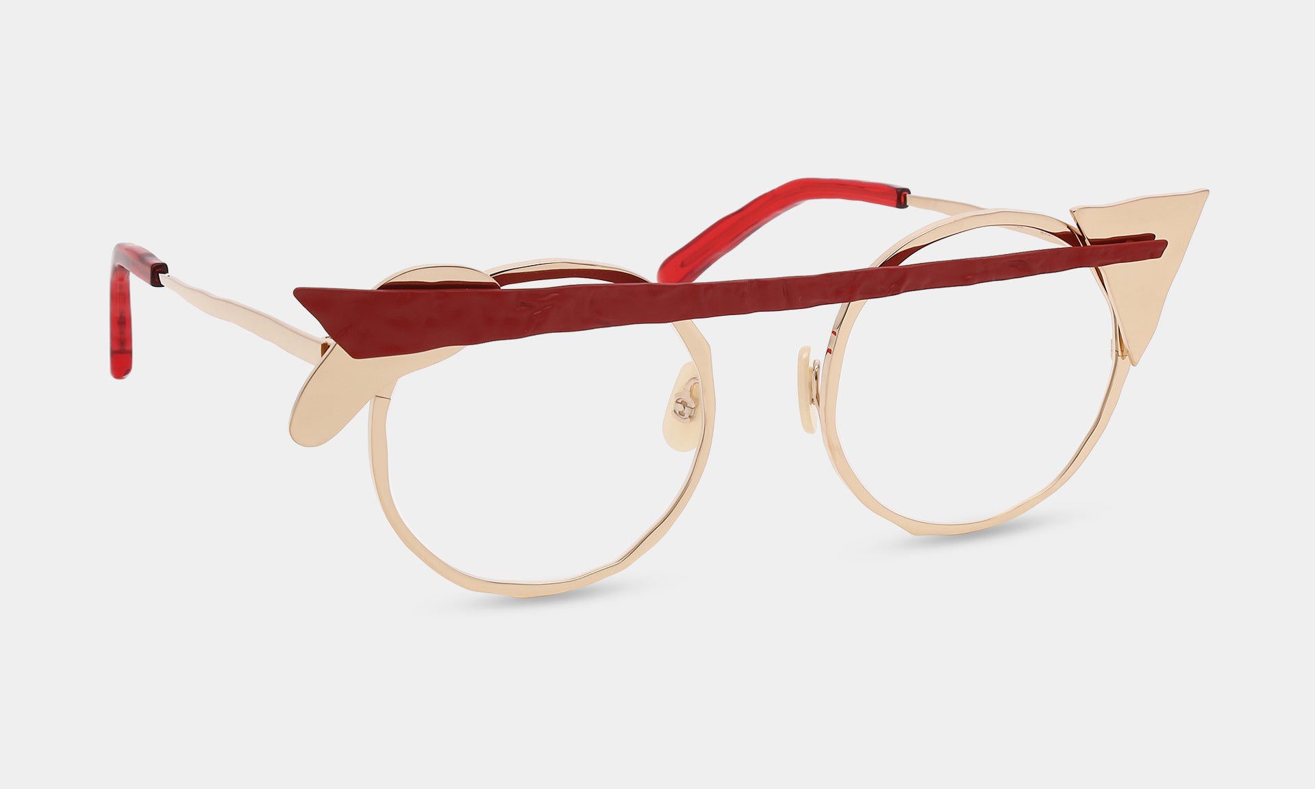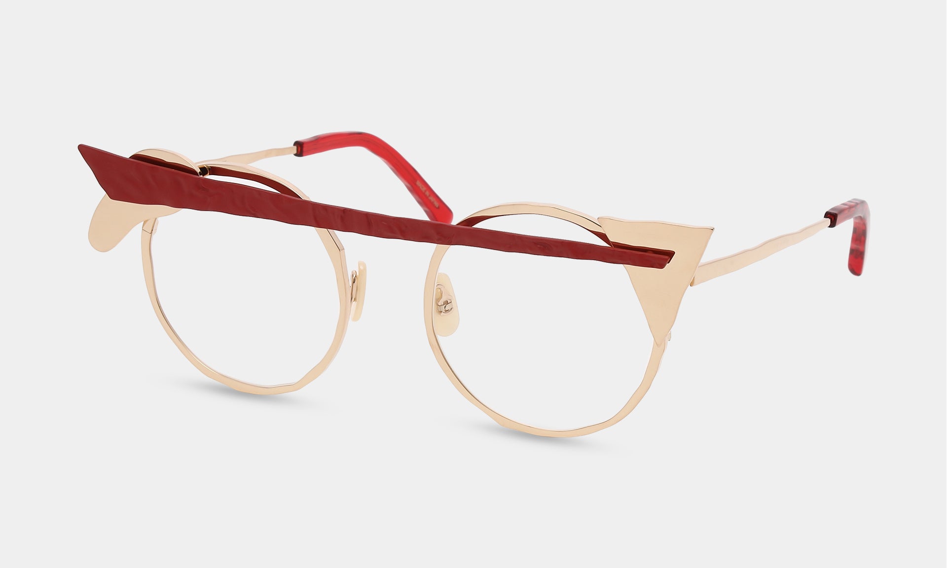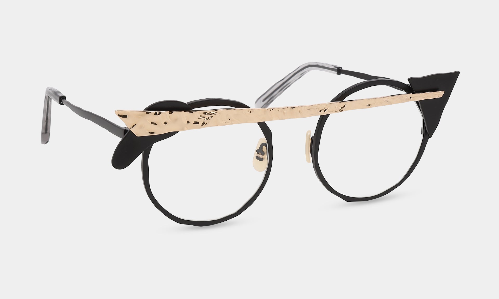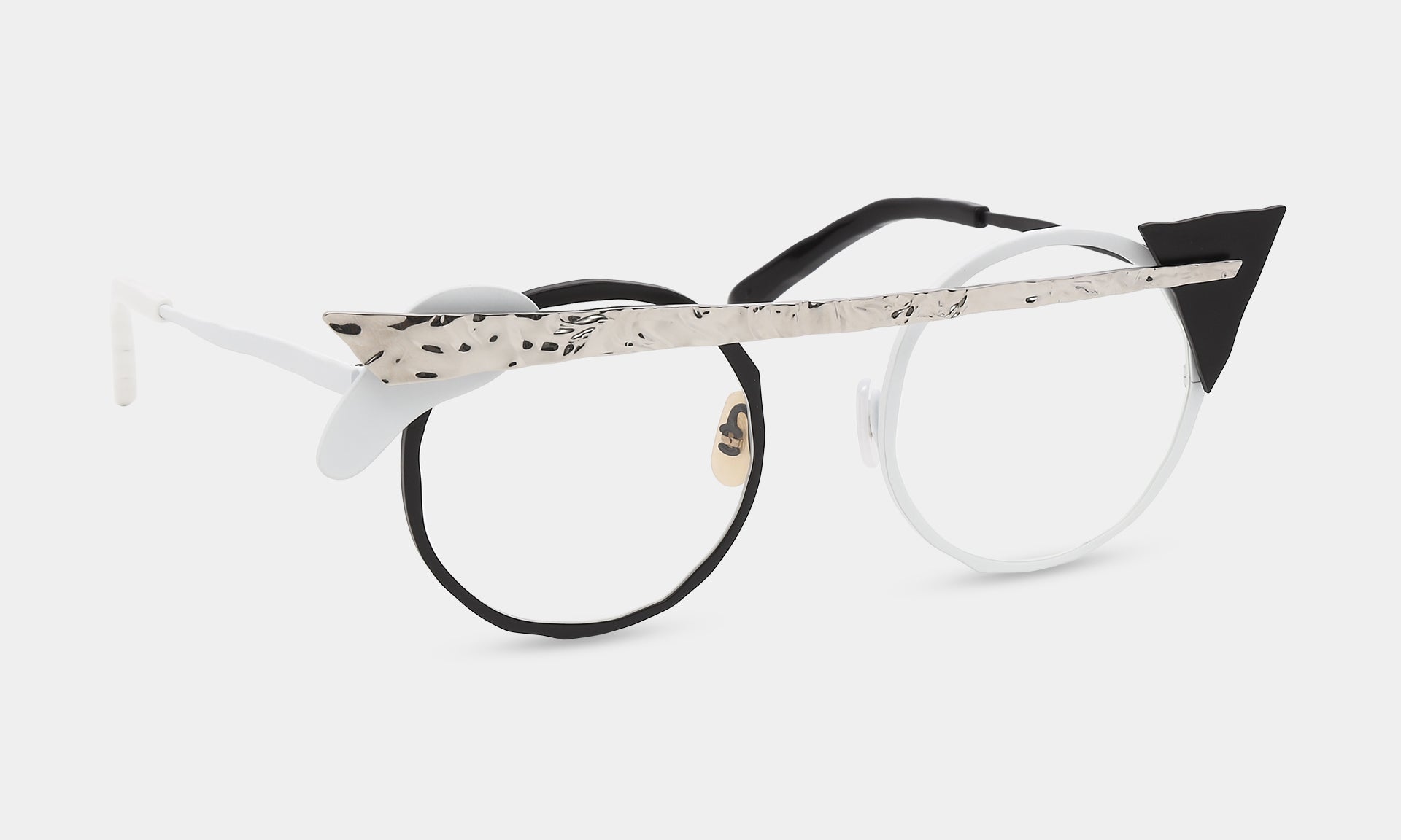 一つひとつのパーツを積み重ねる実験的なデザイン。ヨロイやブリッジを積み木の様に自由に置いてみる。それが構造となりメガネを作り出しています。色や素材感の違うパーツが組み合わさることで、複雑な色彩とだまし絵のような錯覚を生み出します。